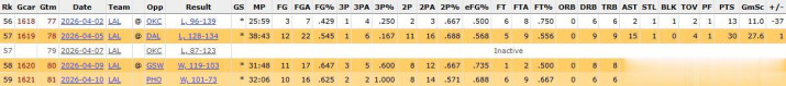 勒布朗·詹姆斯在缺少东契奇和小里的三场比赛中场均得到: