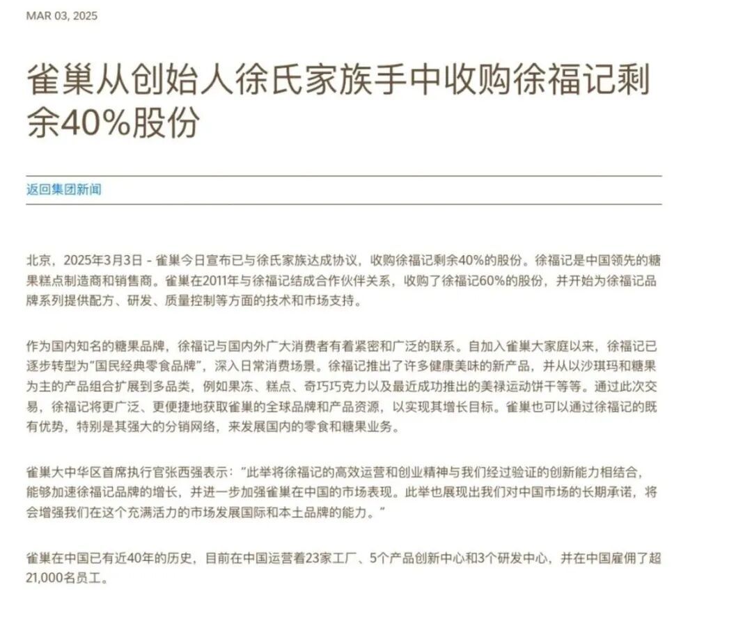 正因如此,局面就彻底变了,眼看着徐福记在自己最熟悉的战场越守越艰难,背后的大股东便不再满足于只当个“参与者”,雀巢的资本之手从参股变成了完全掌控,这笔天价交易背后,雀巢最看中的正是徐福记像毛细血管一样深入中国大街小巷的销售网络。
